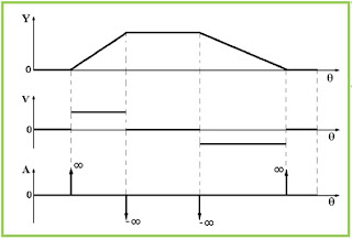 Si se tuviese una leva con la que se pretende, por ejemplo, realizar: una subida con movimiento uniforme, una detención y finalmente un retorno, y no se tomase ningún tipo de precaución resultaría que podrían aparecer aceleraciones del seguidor tendiendo a infinito, tal como se ve en la figura