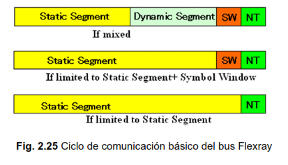 Media Acces ControlEl protocolo Flexray se basa en un ciclo de comunicación recurrente. Este ciclo está dividido en 4 segmentos:
